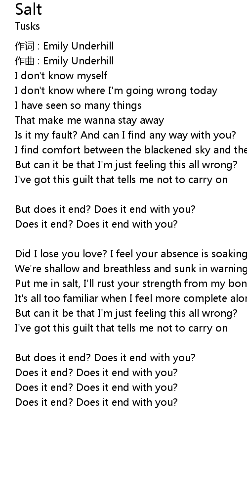| Does it end? Does it end with you? | |