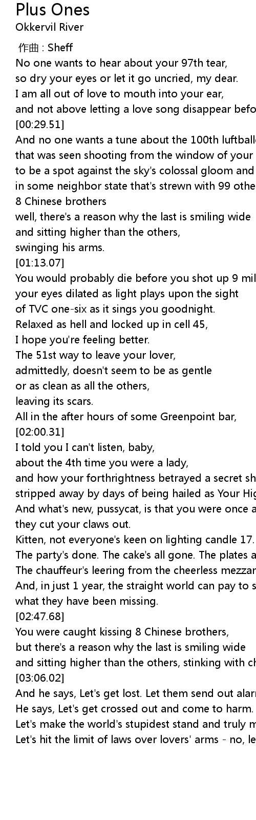 | [00:06.33] | No one wants to hear about your 97th tear, |