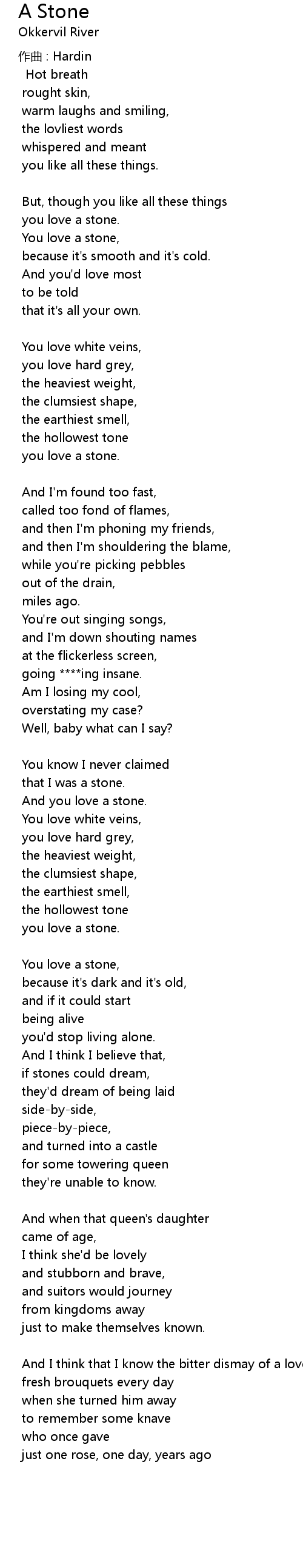 | 歌曲 | A Stone |