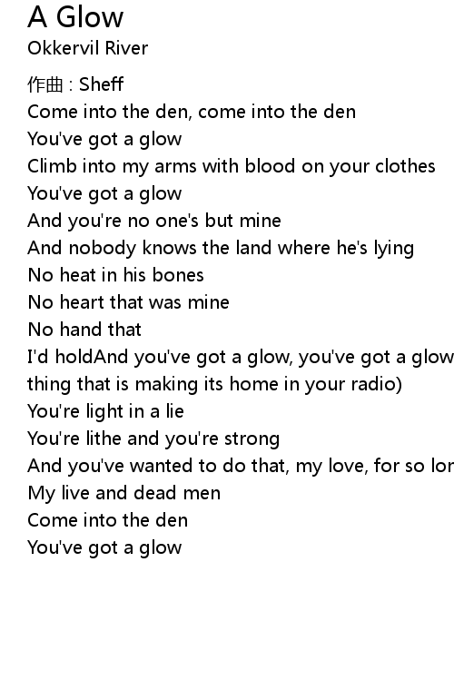 | I' d holdAnd you' ve got a glow, you' ve got a glow And there' s no escaping, the thing that is making its home in your radio | |
