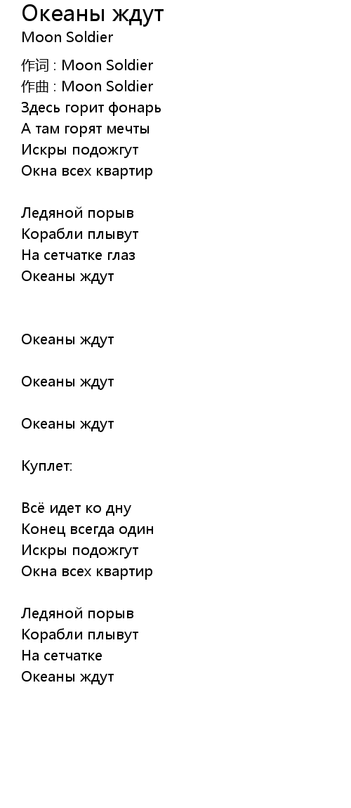 | 歌曲 | Океаны ждут |
