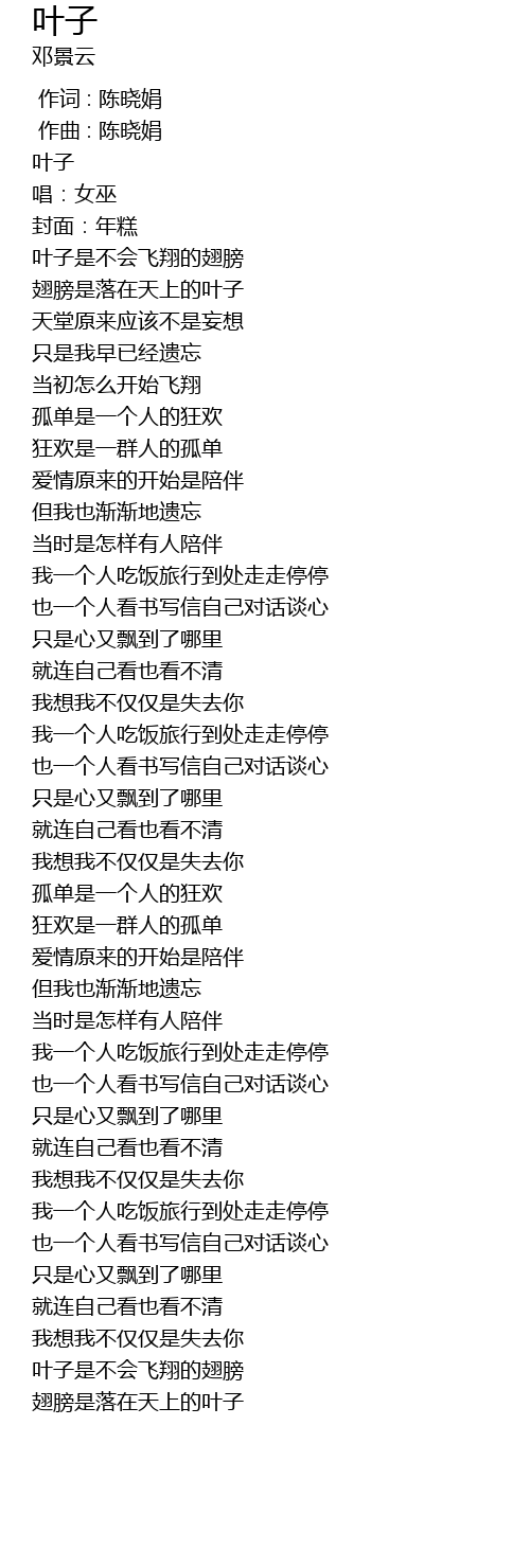 | 歌曲 | 叶子 |