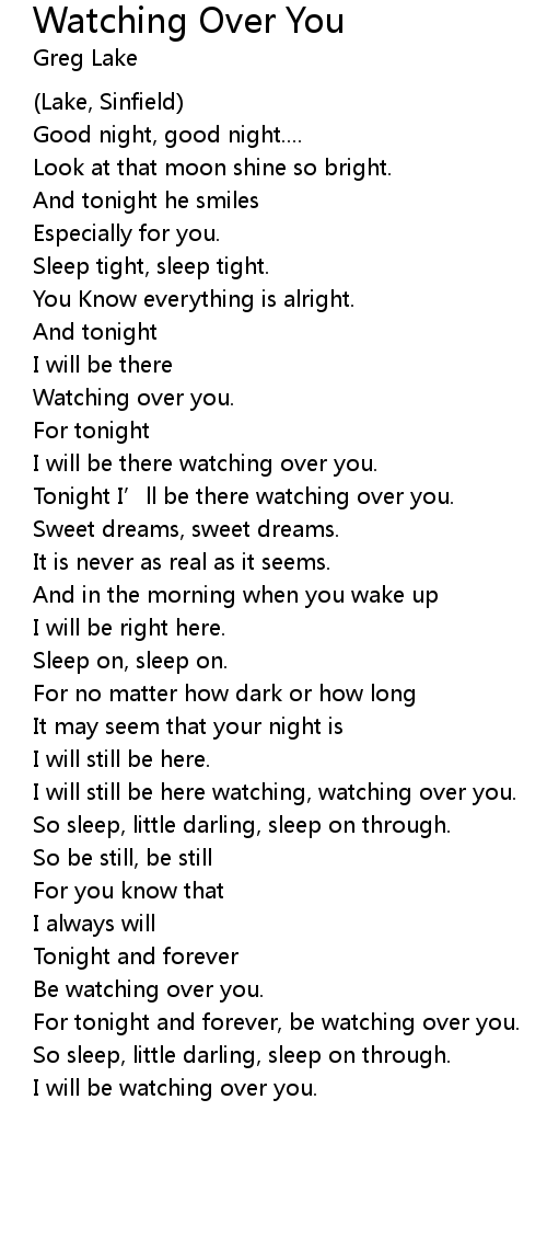 | Tonight I' ll be there watching over you. | |