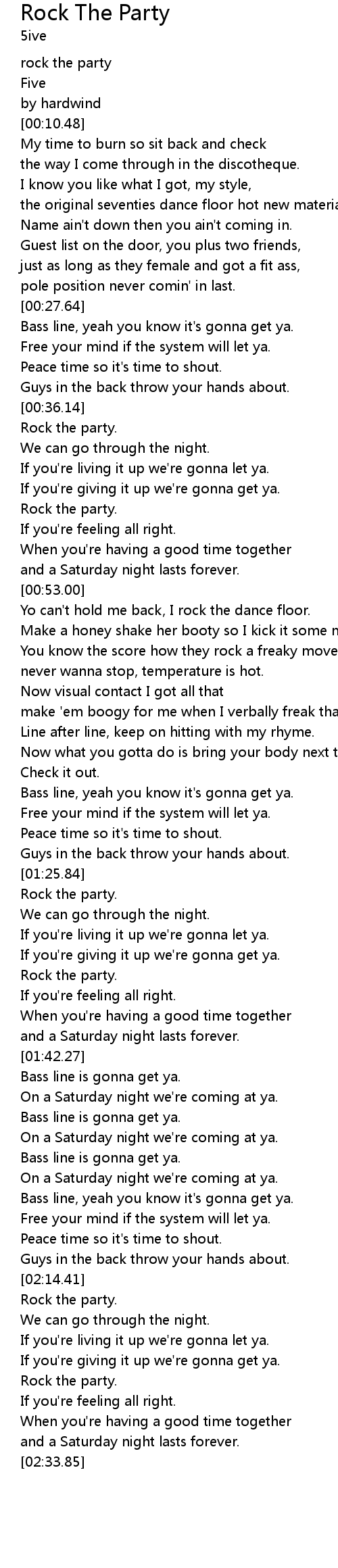 | [01:59.61] | On a Saturday night we're coming at ya. |