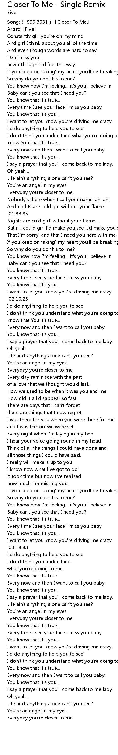 | [03:13.21] | Every time I see your face I miss you baby |