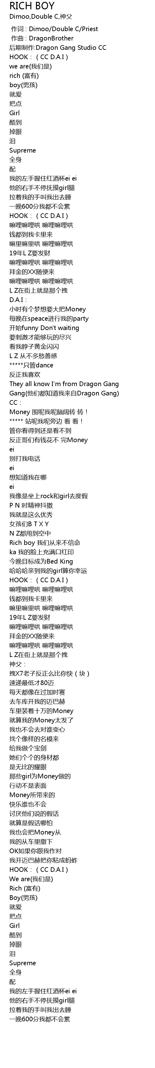 [01:28.110] Rich boy wǒ men cóng lái bù xìn mìng