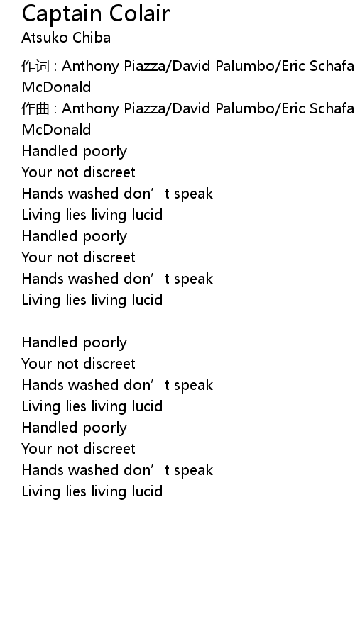 | 作词 : Anthony Piazza/David Palumbo/Eric Schafauser/Karim Lakhdar/Kevin McDonald | |