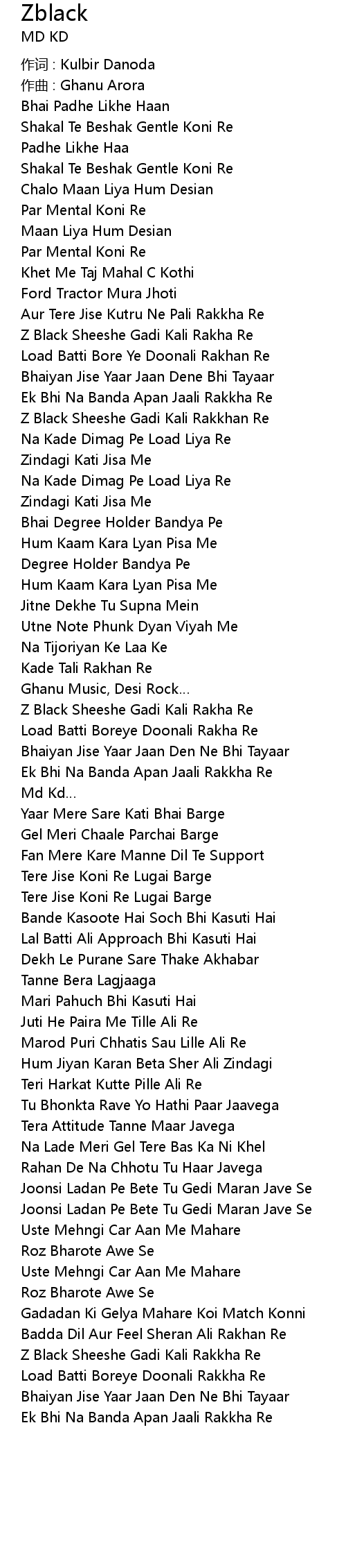 | Z Black Sheeshe Gadi Kali Rakkhan Re | |