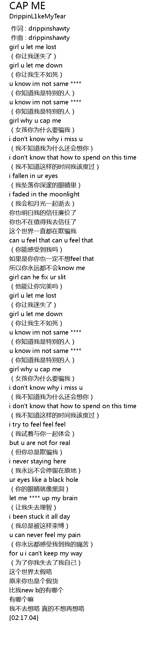| [00:30.62] | girl why u cap me |