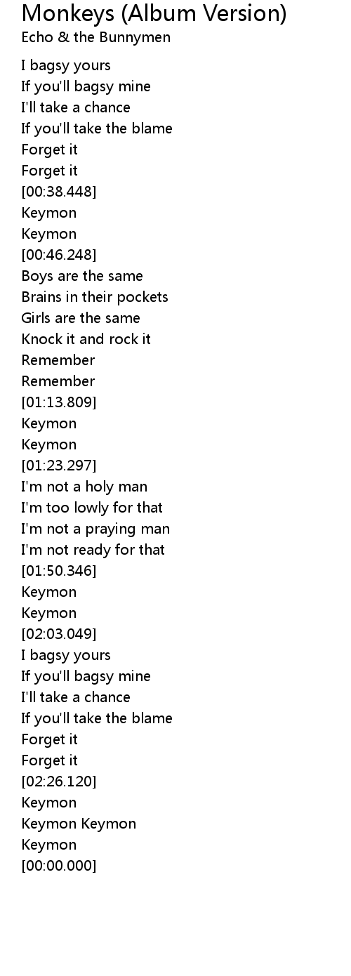 Monkeys (Album Version) 歌词