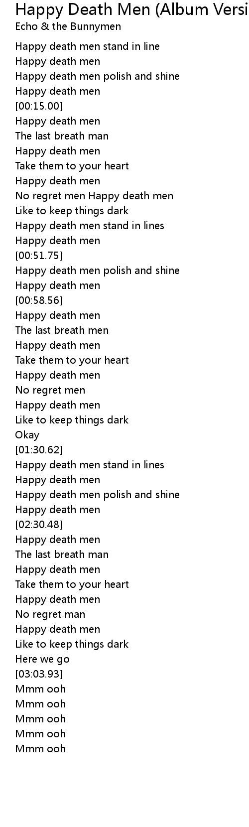 No regret men Happy death men |