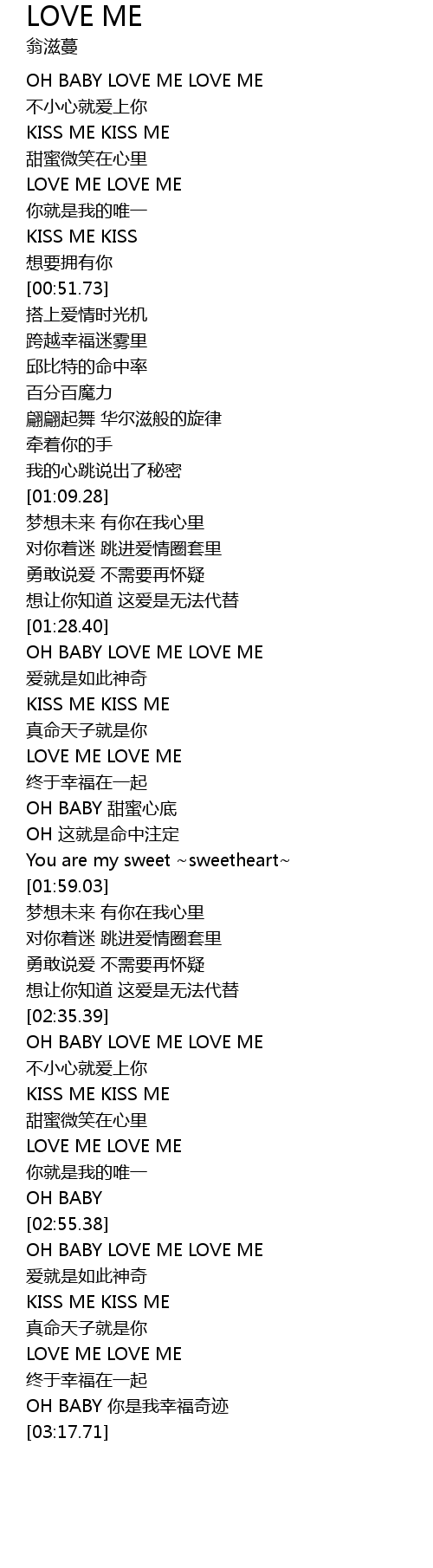 | [00:31.90] | OH BABY LOVE ME LOVE ME |