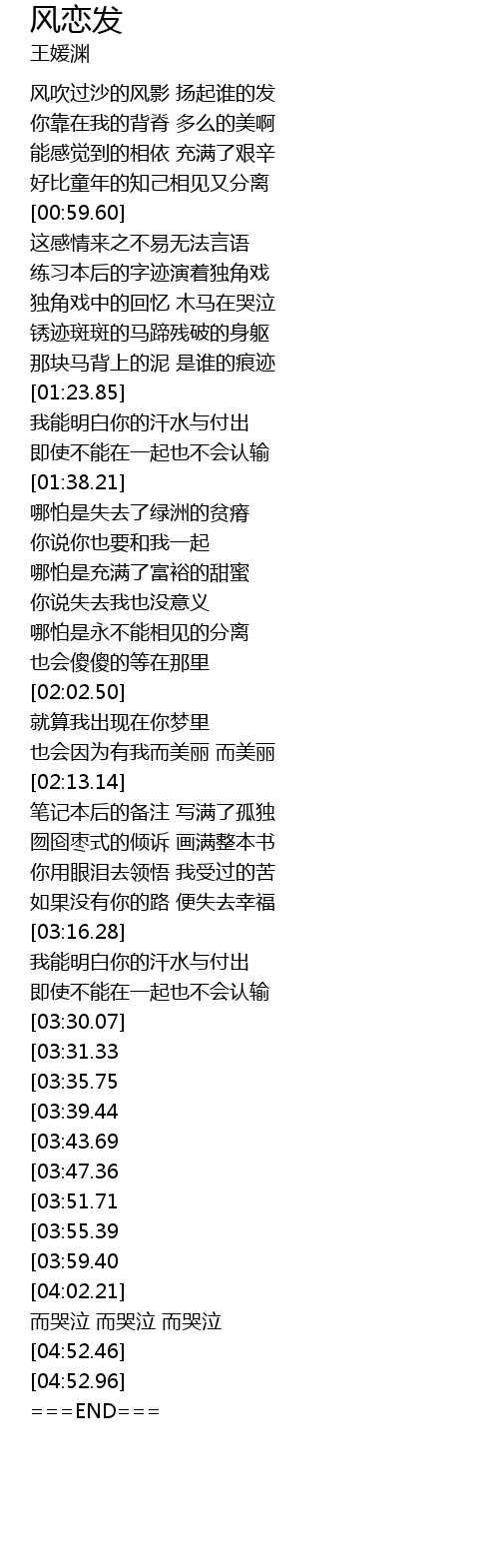 | [00:44.25] | 风吹过沙的风影 扬起谁的发 |