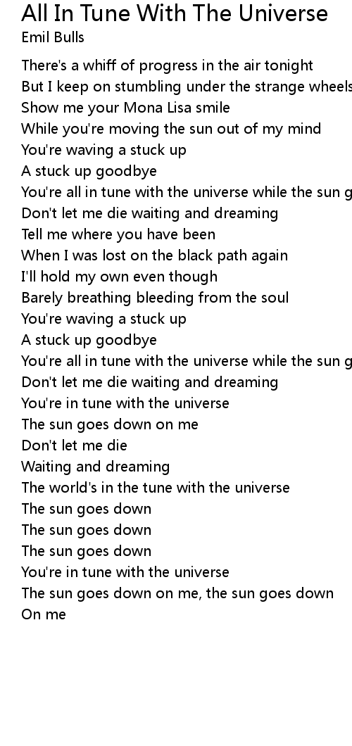 The world's in the tune with the universe |