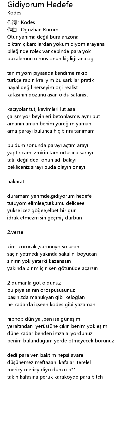 | 歌曲 | Gidiyorum Hedefe |