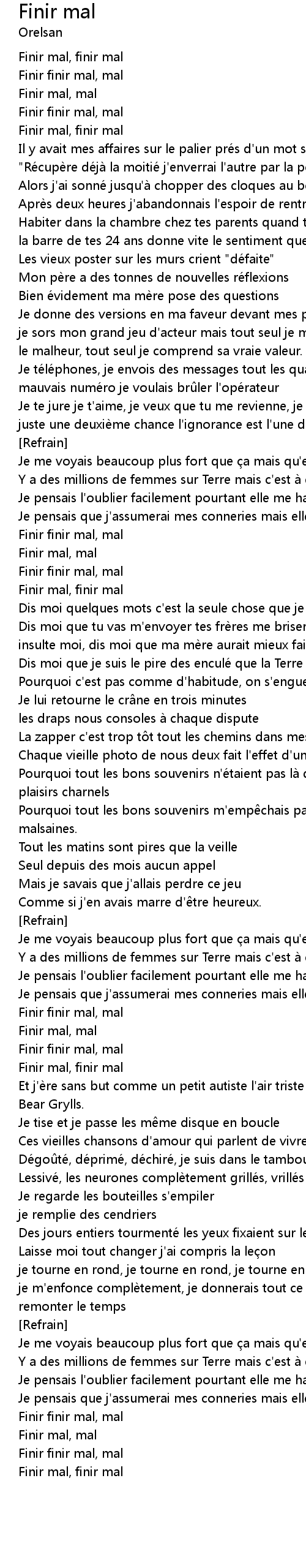 | 歌曲 | Finir mal |