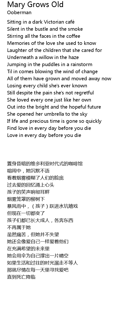 | 歌曲 | Mary Grows Old |