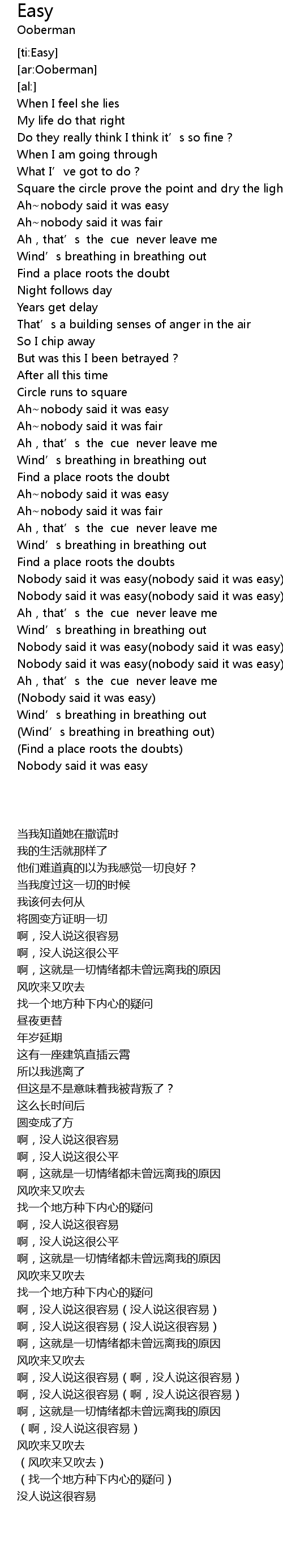 | [02:35.38] | Nobody said it was easy nobody said it was easy |