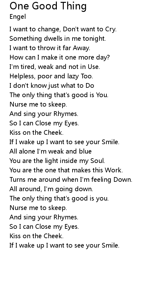 The only thing that's good is You. |
