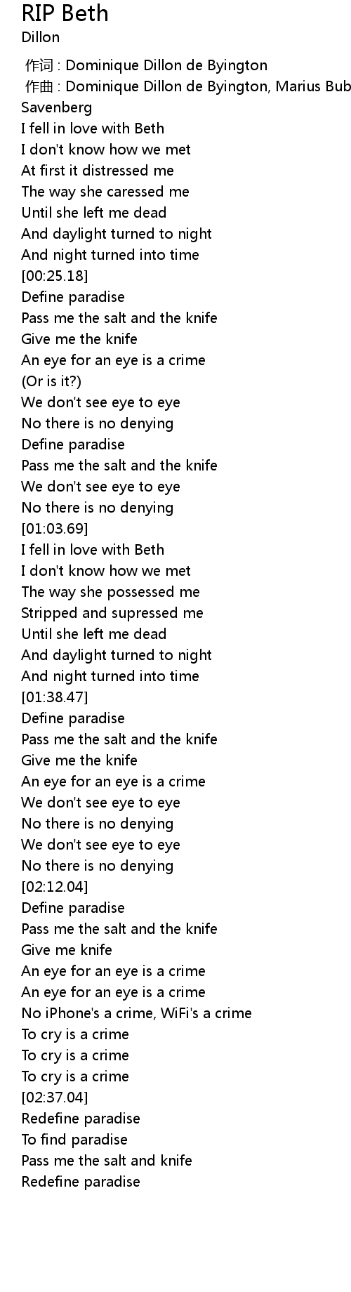 | 歌曲 | RIP Beth |
