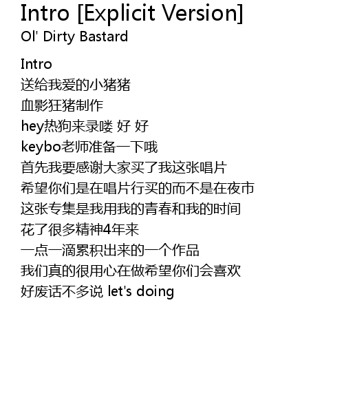 | 歌曲 | Intro [Explicit Version] |