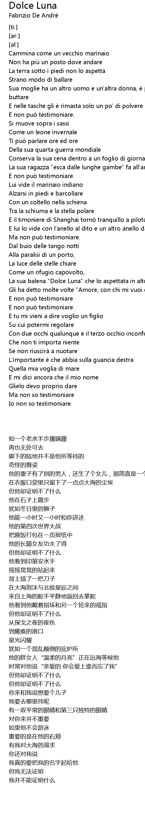| [02:31.85] | Ma non so testimoniare |