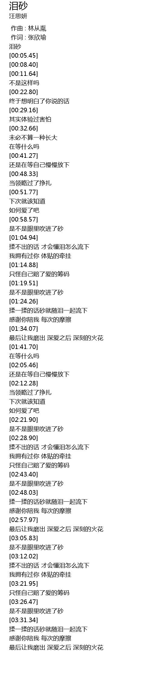 | [03:32.10] | 揉一揉的话砂就随泪一起流下 |