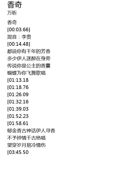 | [00:02.25] | 香奇 |