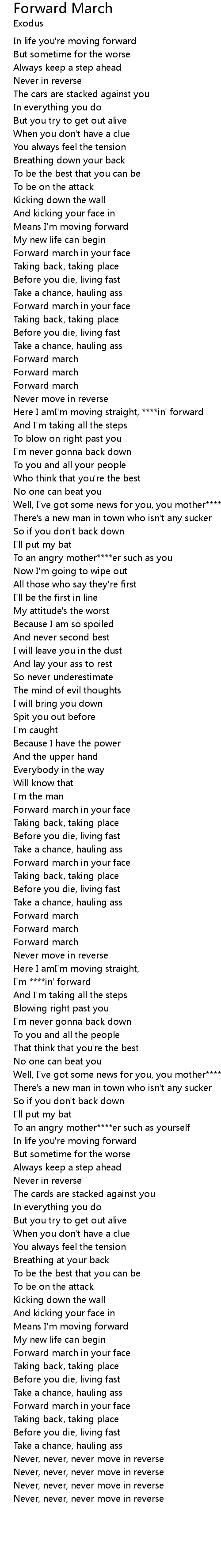 Here I amI'm moving straight, ****in' forward
