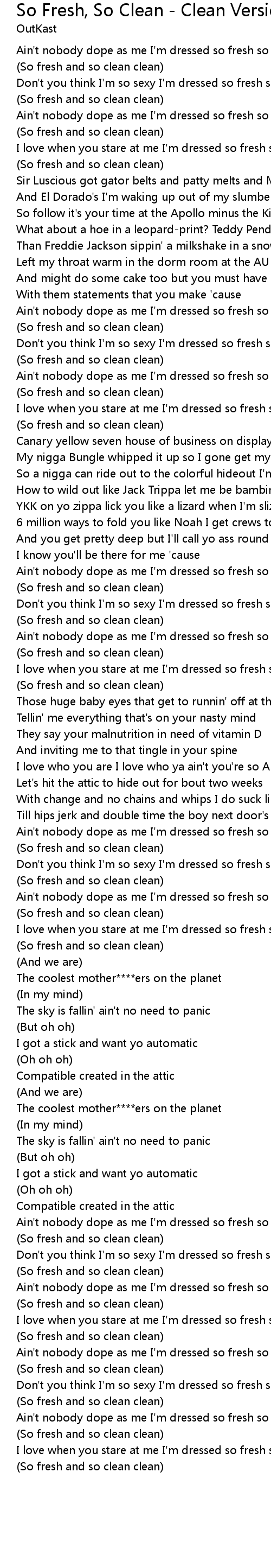 | Ain't nobody dope as me I'm dressed so fresh so clean | |