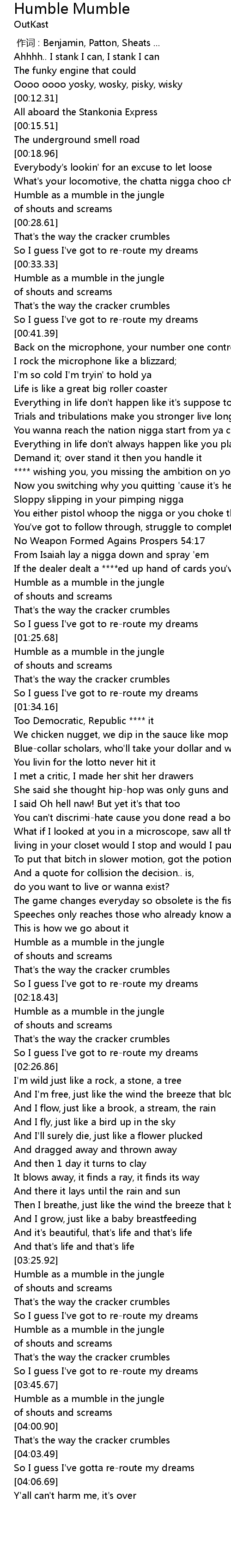 | [03:29.32] | Humble as a mumble in the jungle |