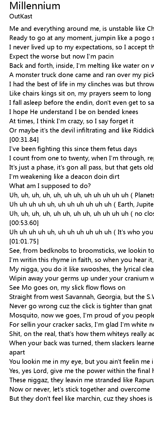 | [00:43.41] | Uh, uh, uh, uh, uh, uh uh, uh uh uh uh uh Planets and stars |