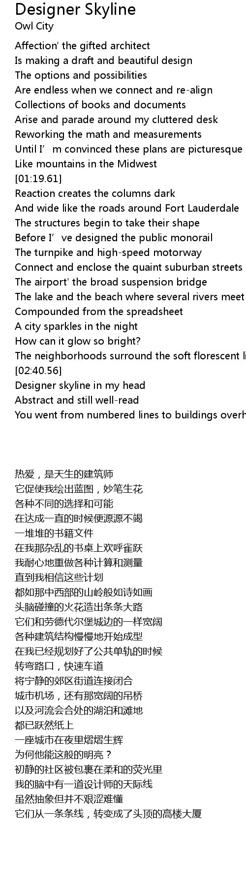 | [02:42.44] | 我的脑中有一道设计师的天际线 |