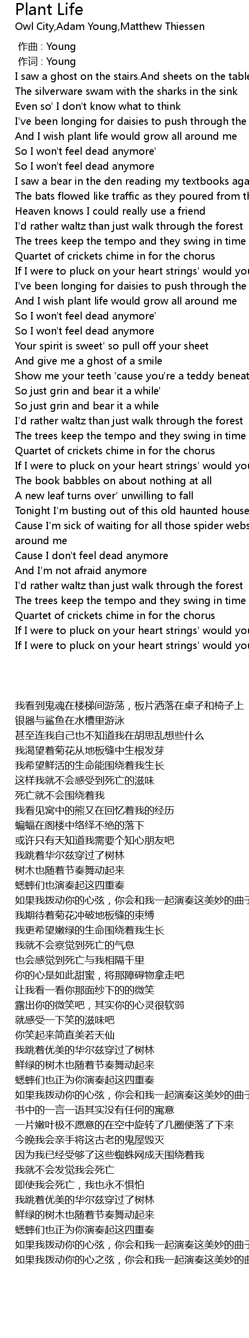 | 歌曲 | Plant Life |
