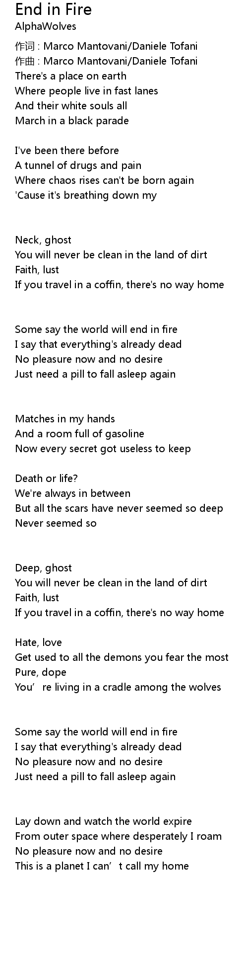 | 歌曲 | End in Fire |