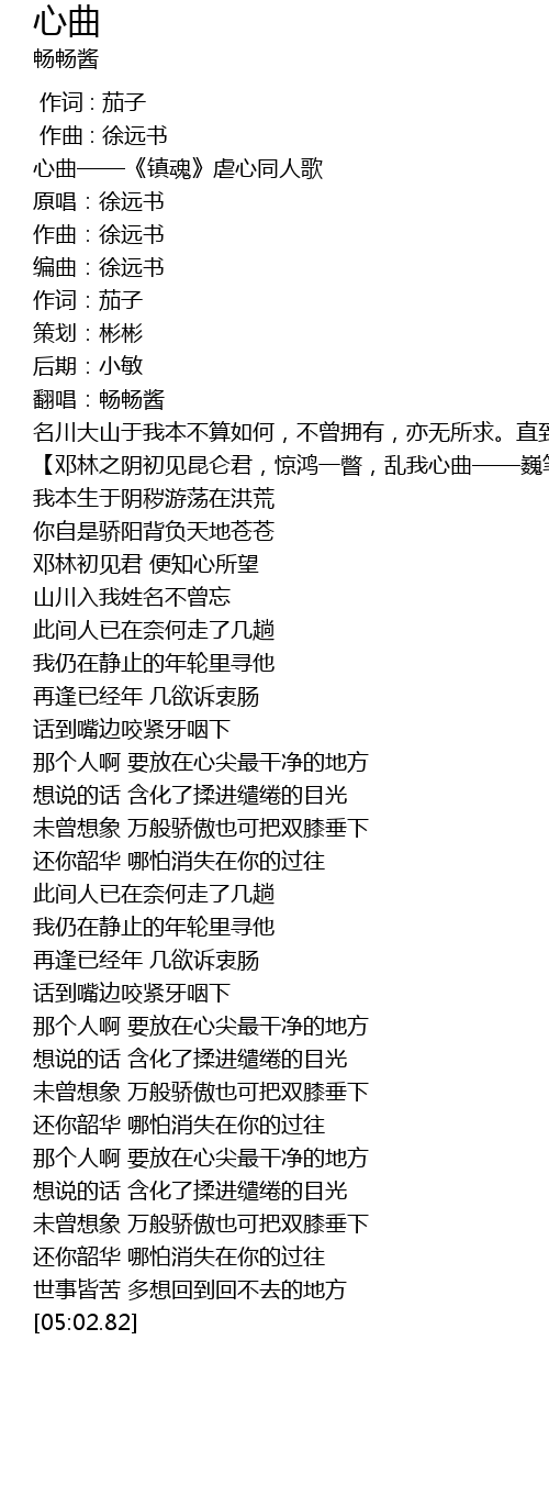 | [00:05.42] | 心曲——《镇魂》虐心同人歌 |