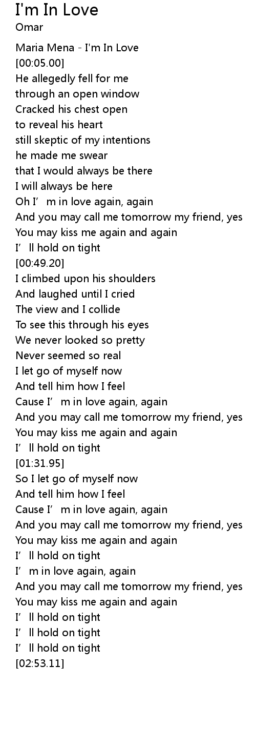 | [01:18.94] | And you may call me tomorrow my friend, yes |