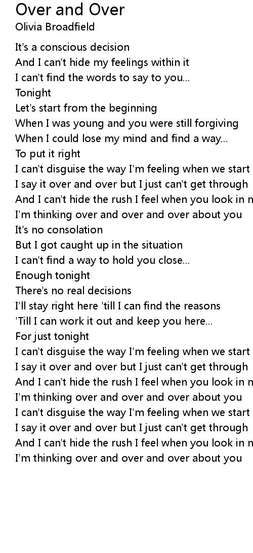 I'm thinking over and over and over about you |