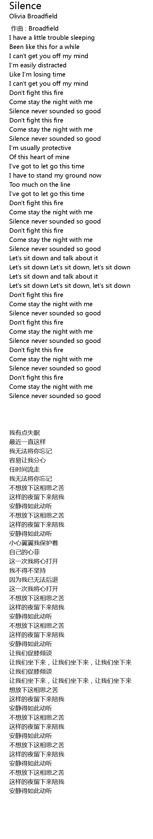 | 歌曲 | Silence |