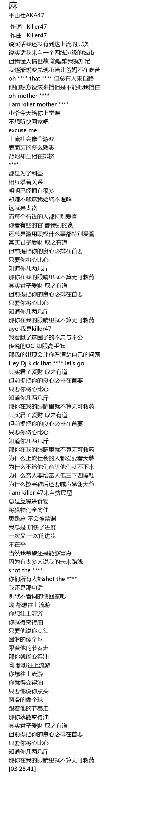 | [02:30.50] | i am killer 47来自贫民窟 |