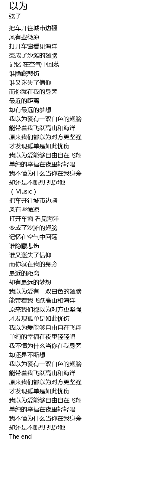 | [03:42.35] | 我以为爱有一双白色的翅膀 |