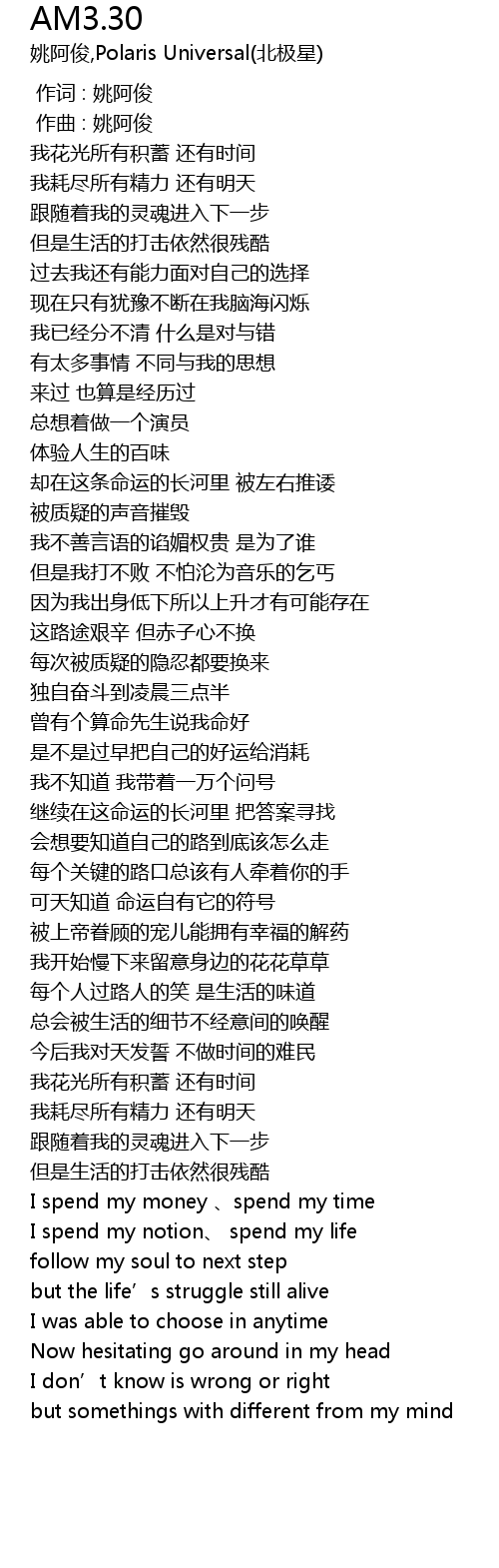 | [00:01.000] | 作曲 : 姚阿俊 |