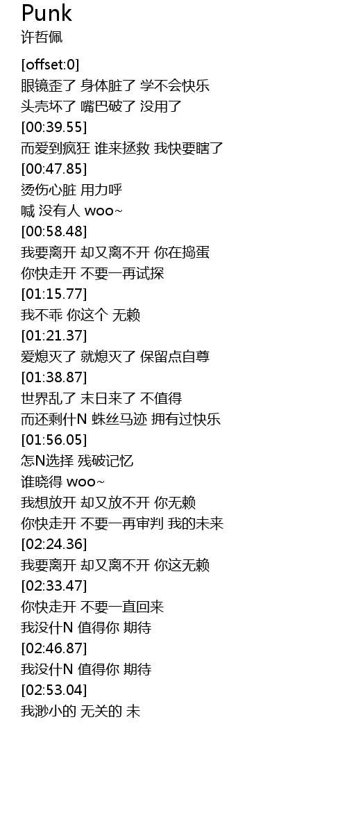 | 歌曲 | Punk |