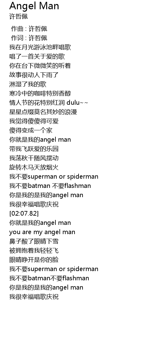 | [01:03.63] | 你就是我的angel man |