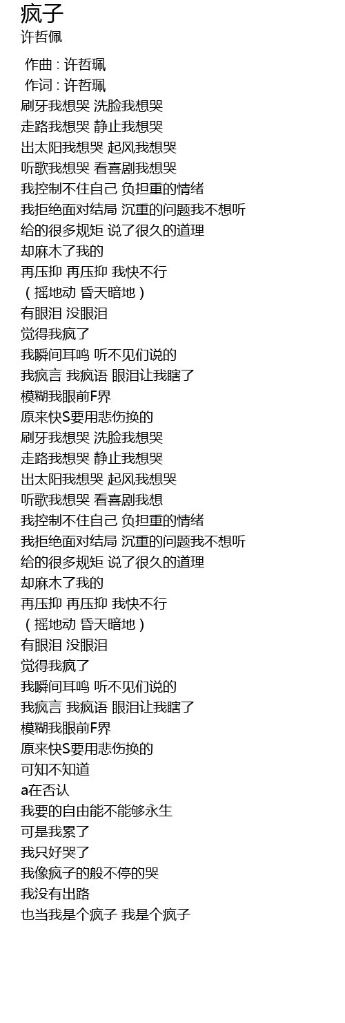 | [01:35.570] | 我疯言 我疯语 眼泪让我瞎了 |