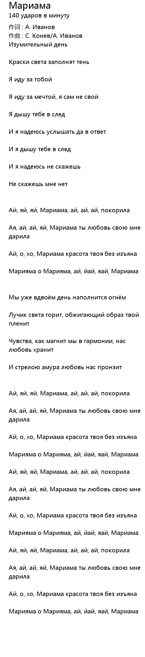 Марияма о Марияма, ай, йай, яай, Мариама |
