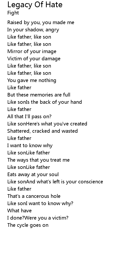 Legacy Of Hate 歌词