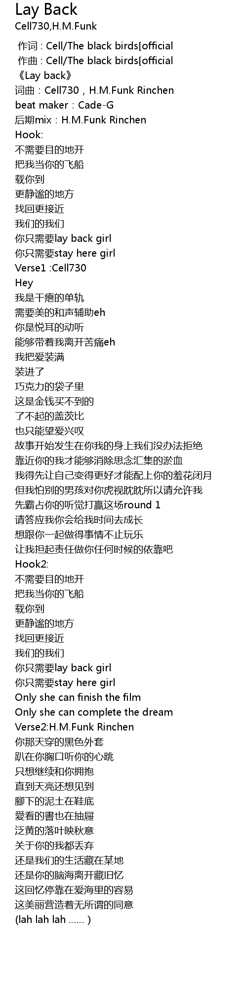 | [00:03.710] | 《Lay back》 |
