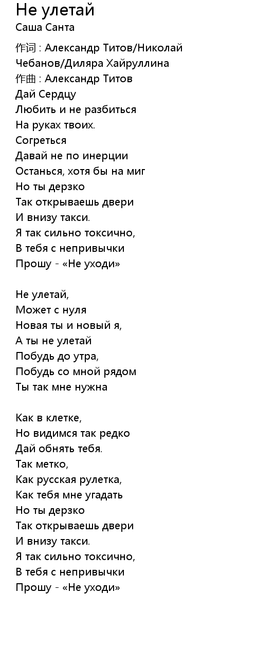 | 歌曲 | Не улетай |