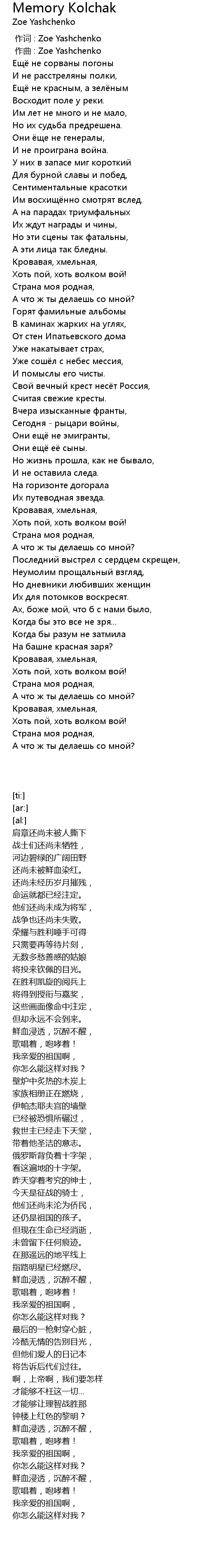 | [00:01.000] | zuò qǔ : Zoe Yashchenko |
